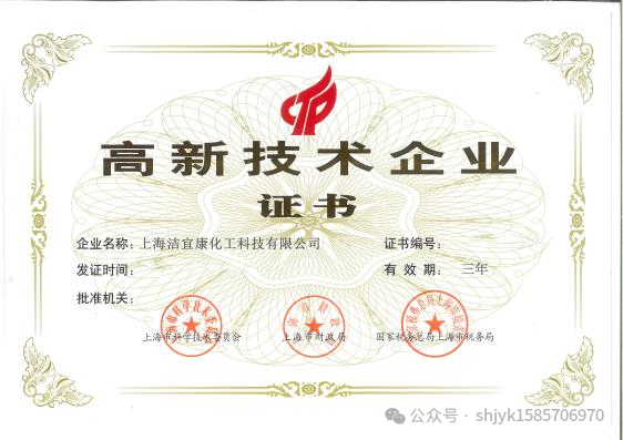 (1)上海洁宜康与帼帆化工在激烈的市场竞争中脱颖而出,凭借卓越的表现,双双荣获“国家高新技术企业”与“上海市专精特新中小企业”两项极具分量的荣誉。