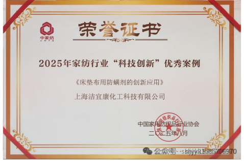 (3)在家纺行业的创新浪潮中,上海洁宜康表现尤为突出,成功斩获“科技创新优秀案例”与“科技创新优秀专利”双重荣誉。这一成就充分体现了公司在家纺科技创新领域的领先水平,成为行业创新发展的典范。