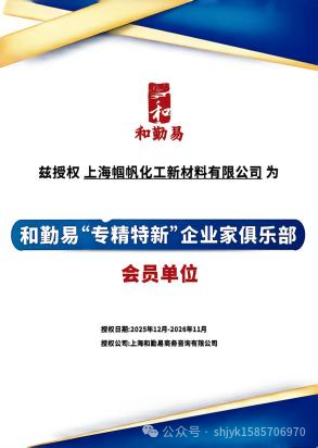 (6)上海帼帆化工新材料有限公司凭借在化工新材料领域的技术创新优势与专业实力,成功获得和勤易“专精特新”企业家俱乐部的认可,被授权成为其会员单位,进一步拓展了公司在行业内的交流与合作空间。
