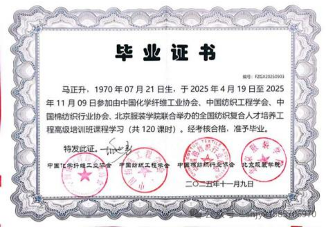 (1)公司总经理马正升博士圆满完成 2025 纺织高训班学业,将前沿的行业理念与丰富的管理经验融入企业全链创新,为企业的创新发展提供了强大的管理支持。