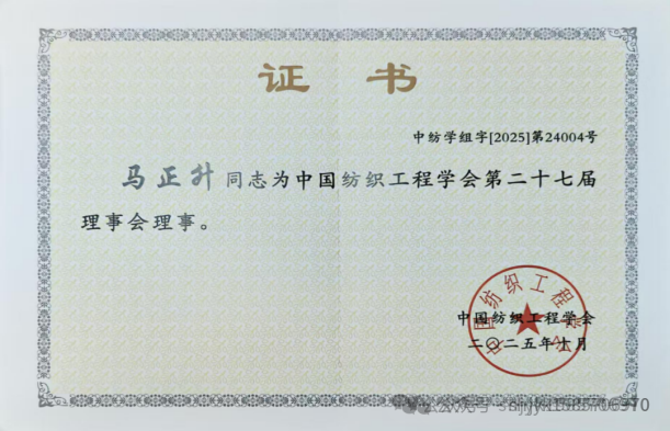 (2)马正升博士凭借在功能纺织材料领域的持续创新与卓越行业贡献,正式获聘中国纺织工程学会高级会员,并同步当选中国纺织工程学会第二十七届理事会理事。这一荣誉不仅是对他个人专业能力的高度认可,也为公司在行业内的话语权提升奠定了坚实基础。