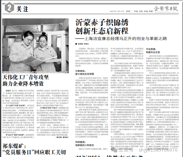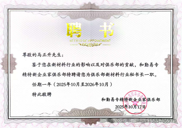 (3)马正升博士凭借深耕功能材料领域的深厚积淀与前瞻布局,正式受聘为和勤易专精特新企业家俱乐部新材料行业秘书长,并同步入选中共上海市松江区广富林街道“创新创业归雁联盟”核心成员。他在不同领域的积极担当,为行业交流与合作搭建了更加广阔的平台。