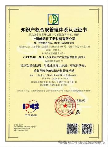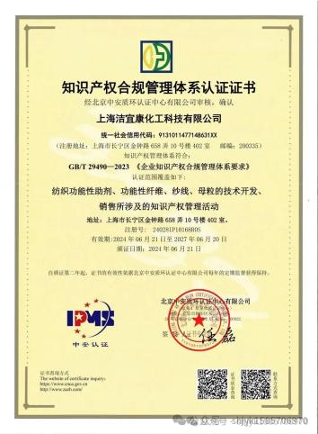 上海洁宜康与上海帼帆双双斩获知识产权合规管理体系认证证书,标志着两家公司在知识产权创造、运用、保护、管理方面达到行业先进水平,为创新发展筑牢制度保障。