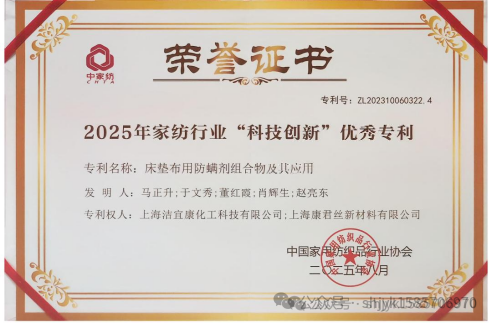 (3)在家纺行业的创新浪潮中,上海洁宜康表现尤为突出,成功斩获“科技创新优秀案例”与“科技创新优秀专利”双重荣誉。这一成就充分体现了公司在家纺科技创新领域的领先水平,成为行业创新发展的典范。